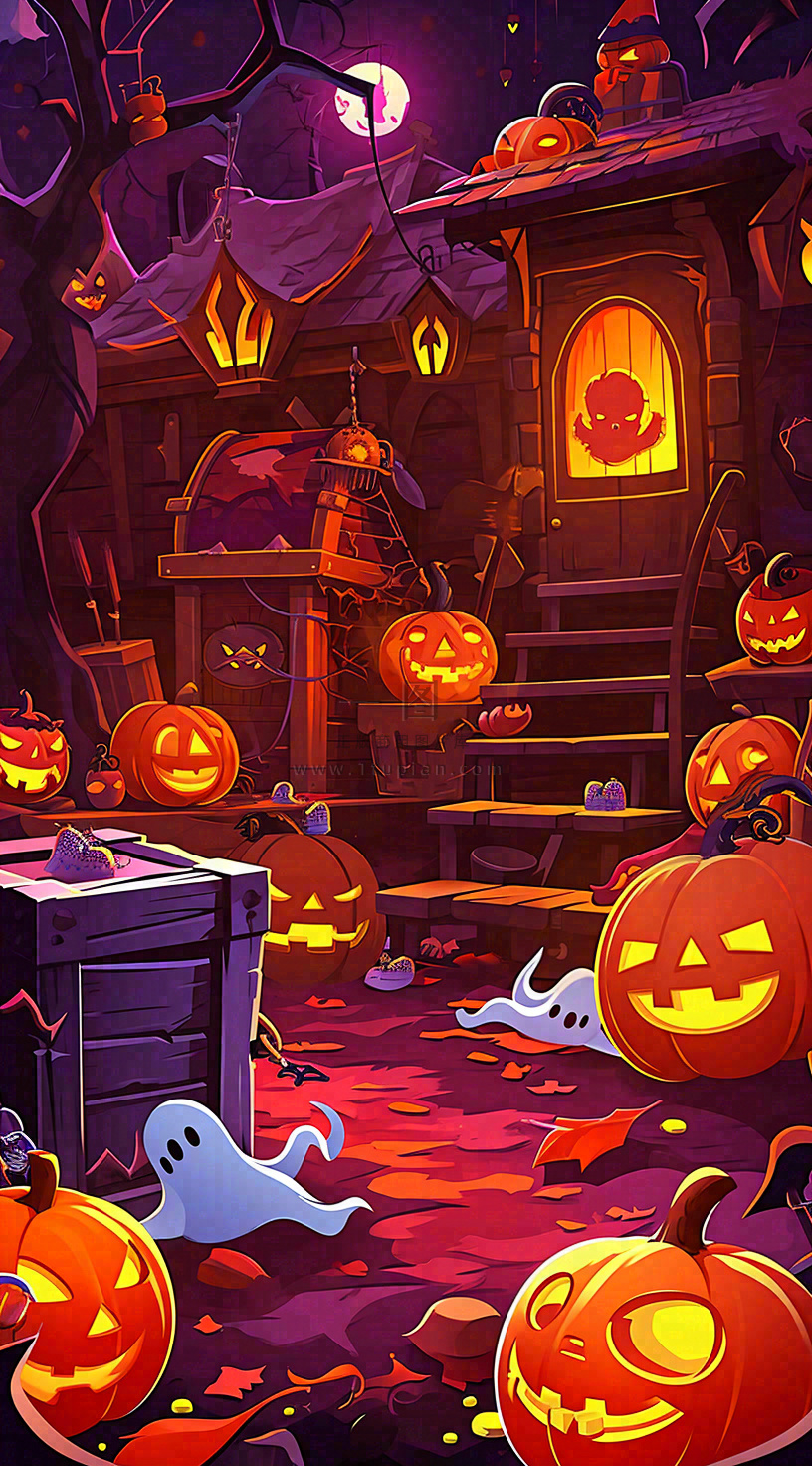 恐怖气氛万圣节南瓜屋子,西方节日卡通